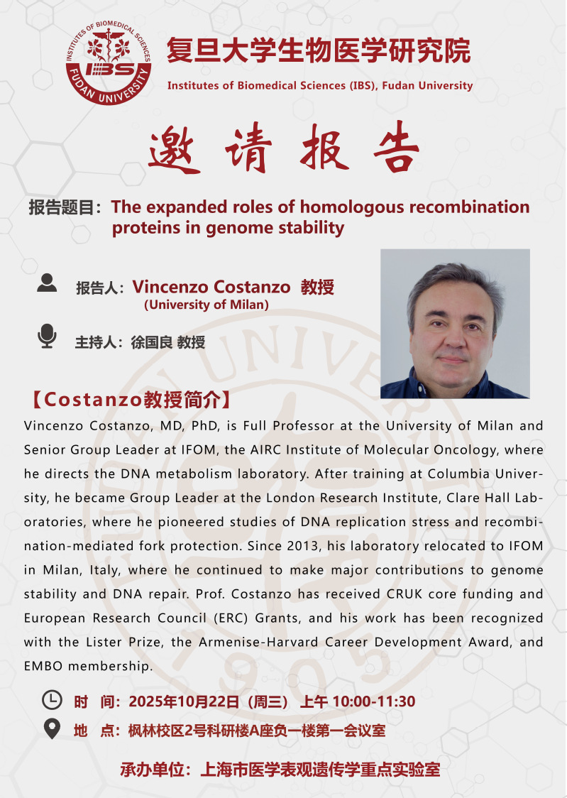 [讲座信息]The expanded roles of homologous recombination proteins in genome stability