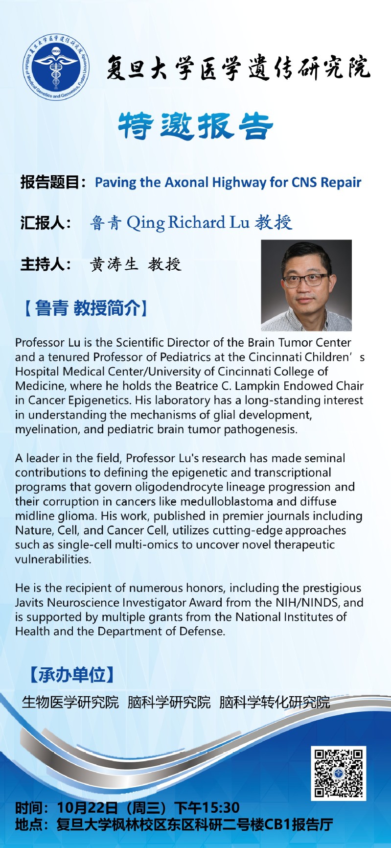 [讲座信息]Paving the Axonal Highway for CNS Repair