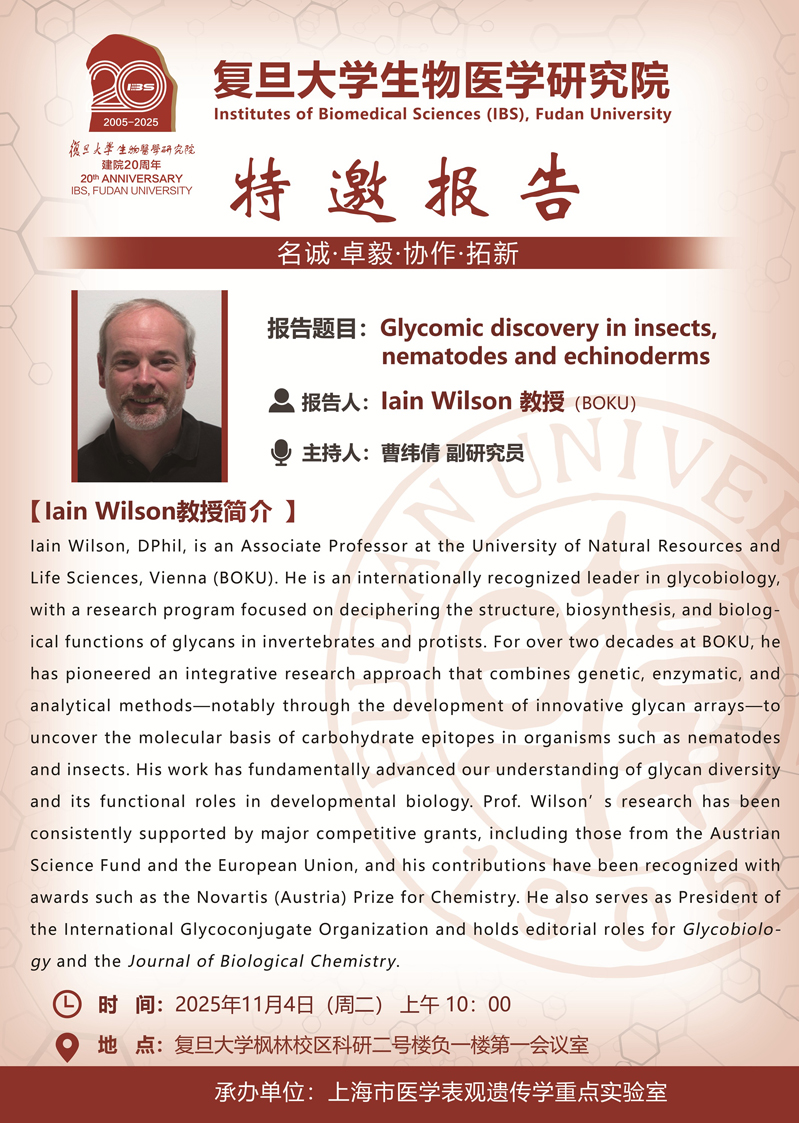 [讲座信息]Glycomic discovery in insects, nematodes and echinoderms