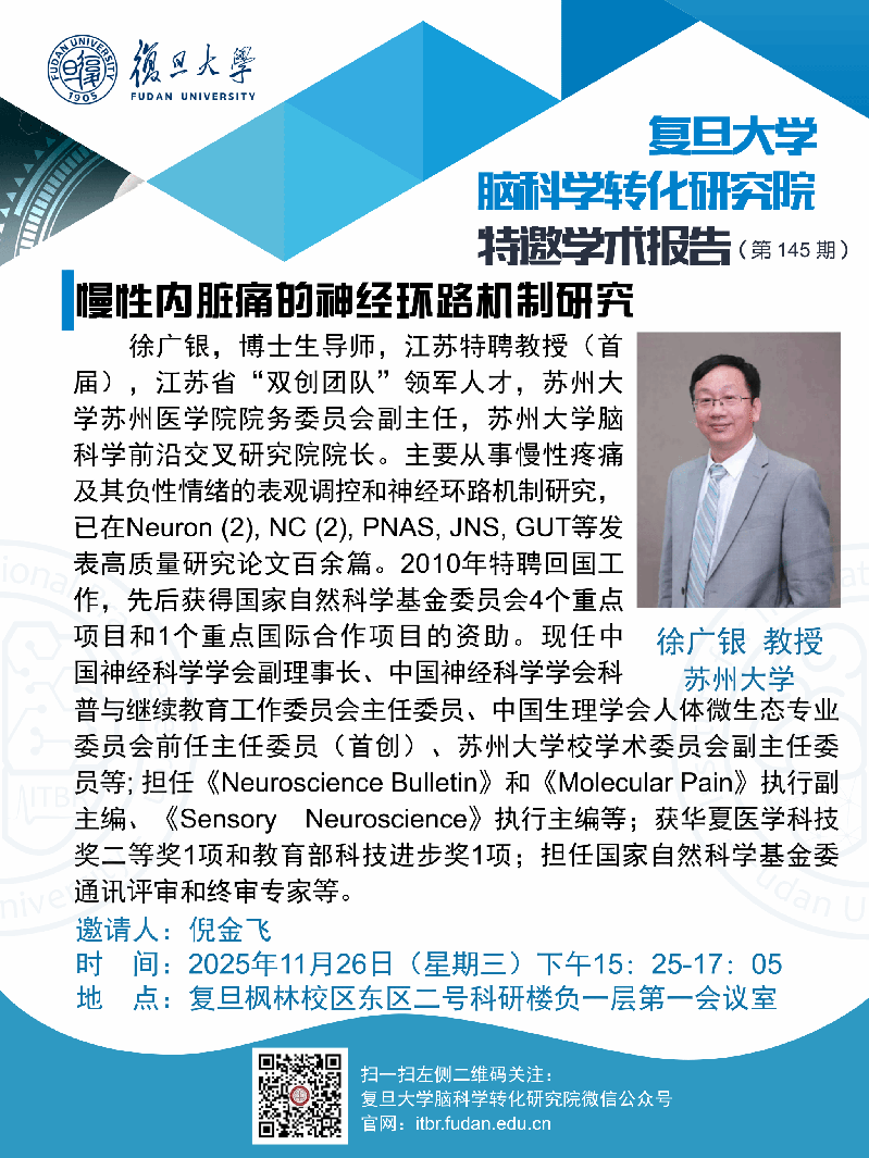 [讲座信息]慢性内脏痛的神经环路机制研究