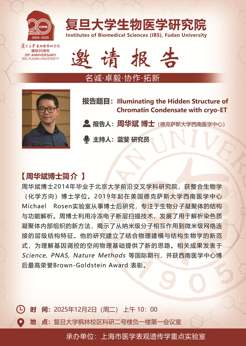 [讲座信息]Illuminating the Hidden Structure of Chromatin Condensate with cryo-ET