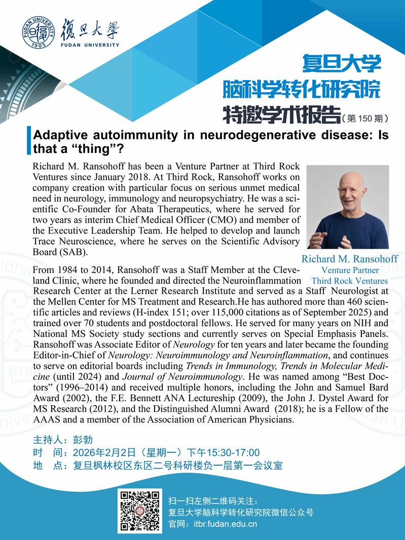 [讲座信息]Adaptive autoimmunity in neurodegenerative disease: Is that a "thing"?