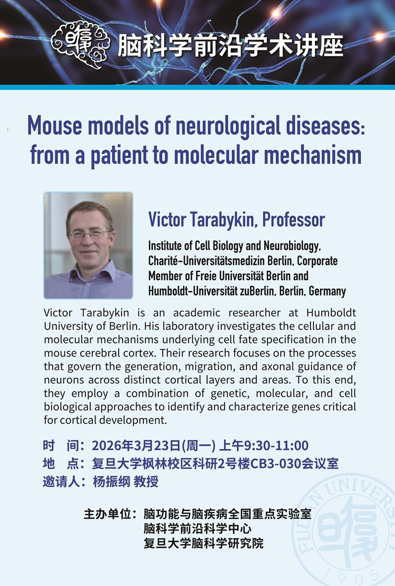 [讲座信息]Mouse models of neurological diseases: from a patient to molecular mechanism