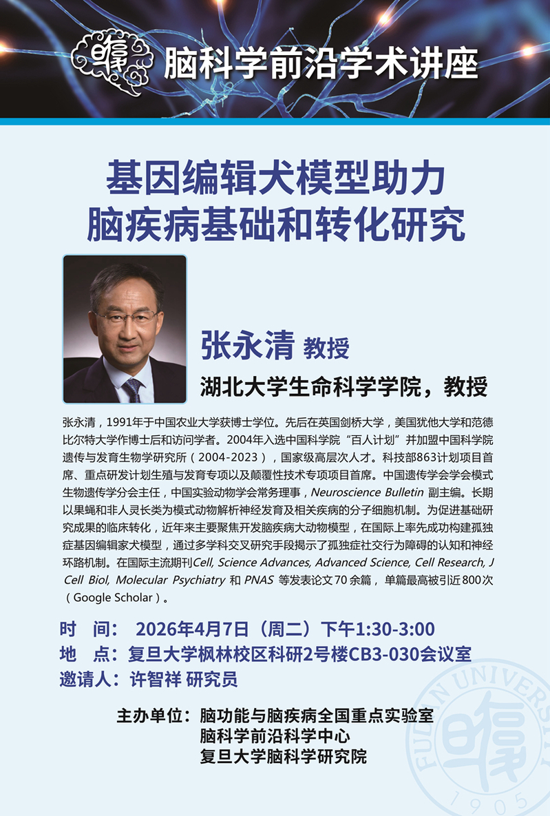 [讲座信息]基因编辑犬模型助力脑疾病基础和转化研究