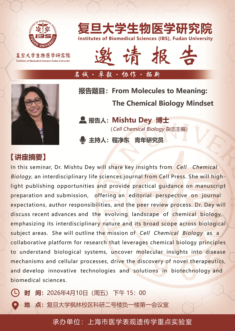 [讲座信息]From Molecules to Meaning: The Chemical Biology Mindset